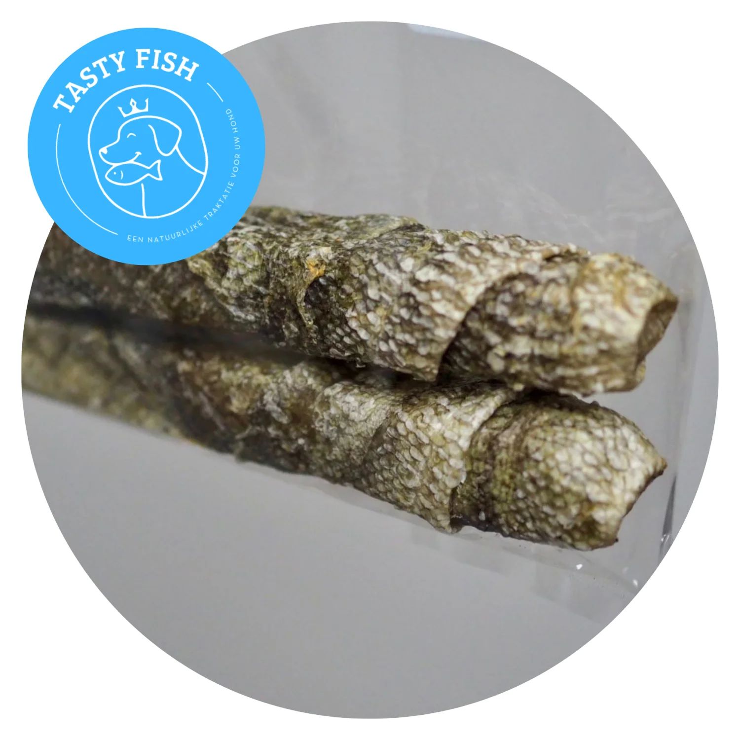 TastyFish Twister Kabeljauw: luchtgedroogde kauwsnack van 100% kabeljauwhuid.